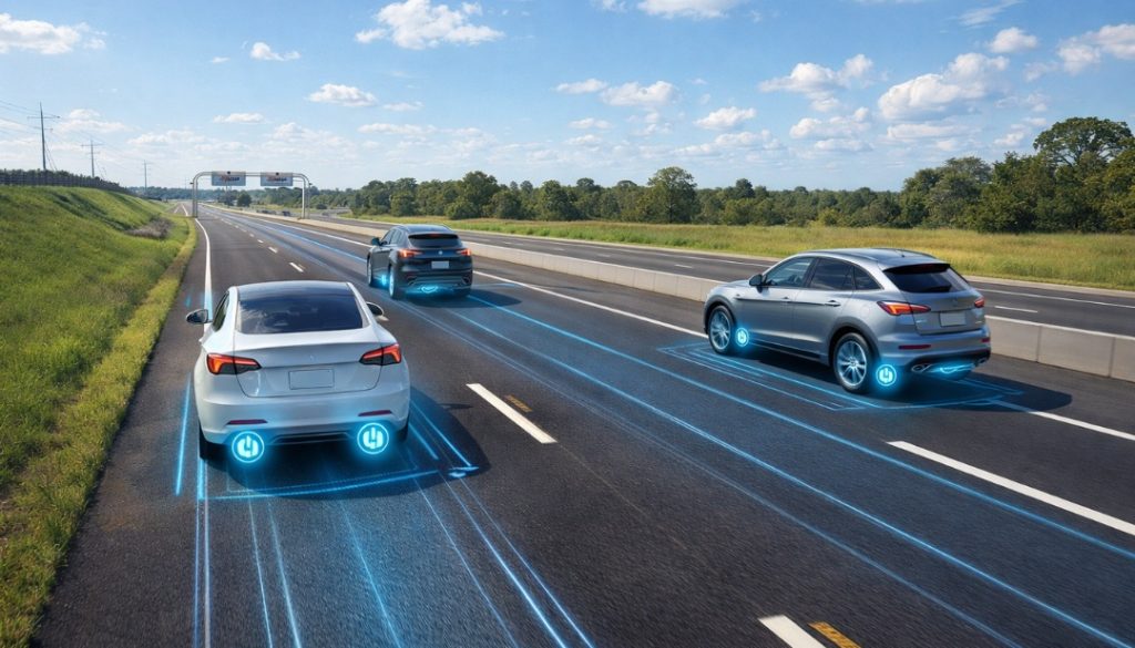 A tecnologia de carregamento sem fio é baseada na indução eletromagnética: bobinas colocadas sob a superfície da estrada transmitem energia para um receptor instalado no veículo elétrico enquanto ele passa por cima, similar a sistemas já usados em alguns dispositivos eletrônicos atuais. Somente veículos especialmente equipados poderão aproveitar esse recurso durante a fase de testes.